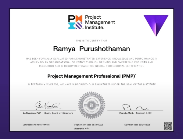 We ensure and tracking the success rate of 100% in PMP Certification Exam. Through our Extensive coaching and Internal Evaluations, Candidates clearing the exam with in a week.