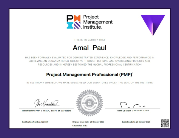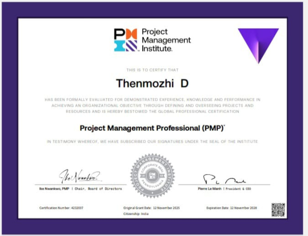 This PMP® Certification Program help you to Learn and understanding the structured streamline of Project management (PMP®) and all the Processes, ITTO's, Principles, Tailorings, Modelings as per PMI® Standard. Our PMP® Trainings are highly interactive with real-time examples, exercises with industry based case-studies. Topics covered from Project Initiation to Closure which includes all the 3 Domains, 12 Knowledge Areas, 49 Processes and 200+ Terminologies. Training and Exam Content is aligned on Latest PMBOK Edition with 2025 updates.