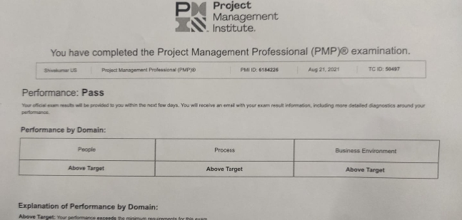 Hello Sir, I Have Cleared my PMP exam and received my certificate. Thanks so much for your support.