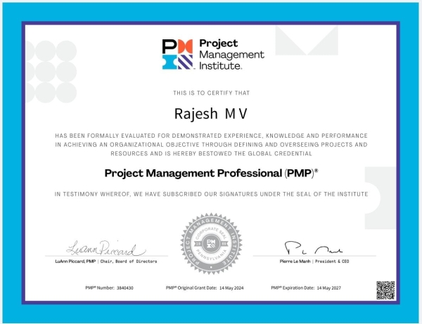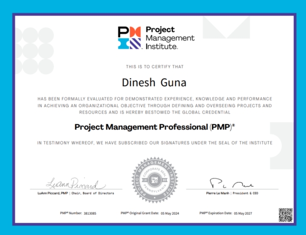 I had undergone the PMP training program at itech gurus. I thank all of you for enlightening & supporting me in achieving this milestone.